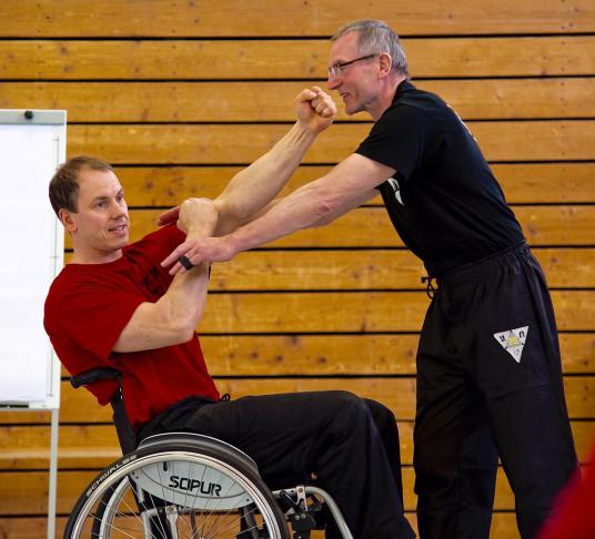 Die RSG Langenhagen bietet in Workshops gezieltes Training für Menschen mit Handicap an. Lerne, dich zu behaupten, Gefahrensituationen früh zu erkennen und im Ernstfall sicher zu reagieren.